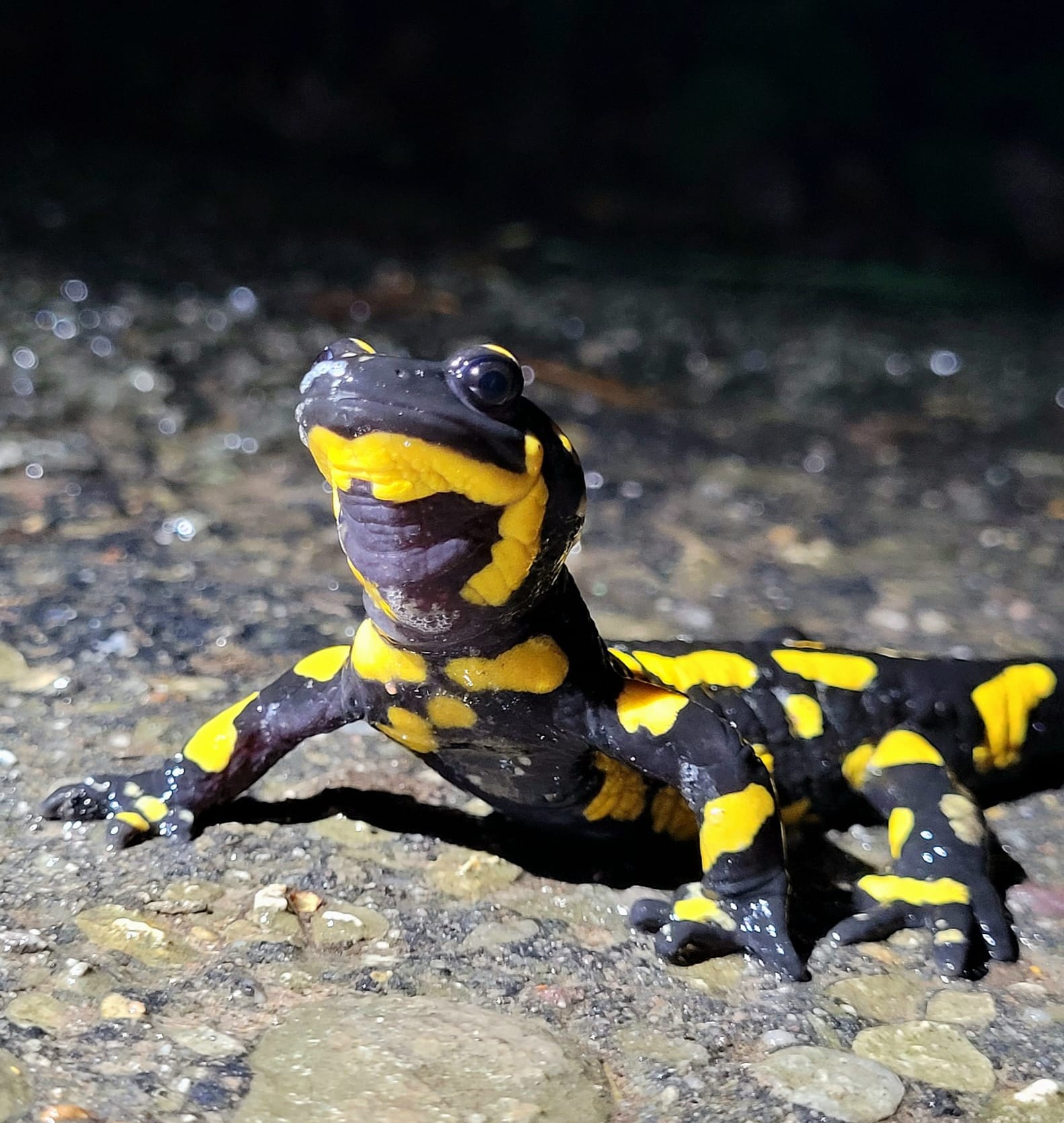 It's Lurchitime! Das nasskalte und sehr regenreiche Wetter gab neulich einigen Feuersalamandern Anlass zur Wanderung. Sehr wahrscheinlich waren sie dabei auf dem Weg zu ihren Winterquartieren.