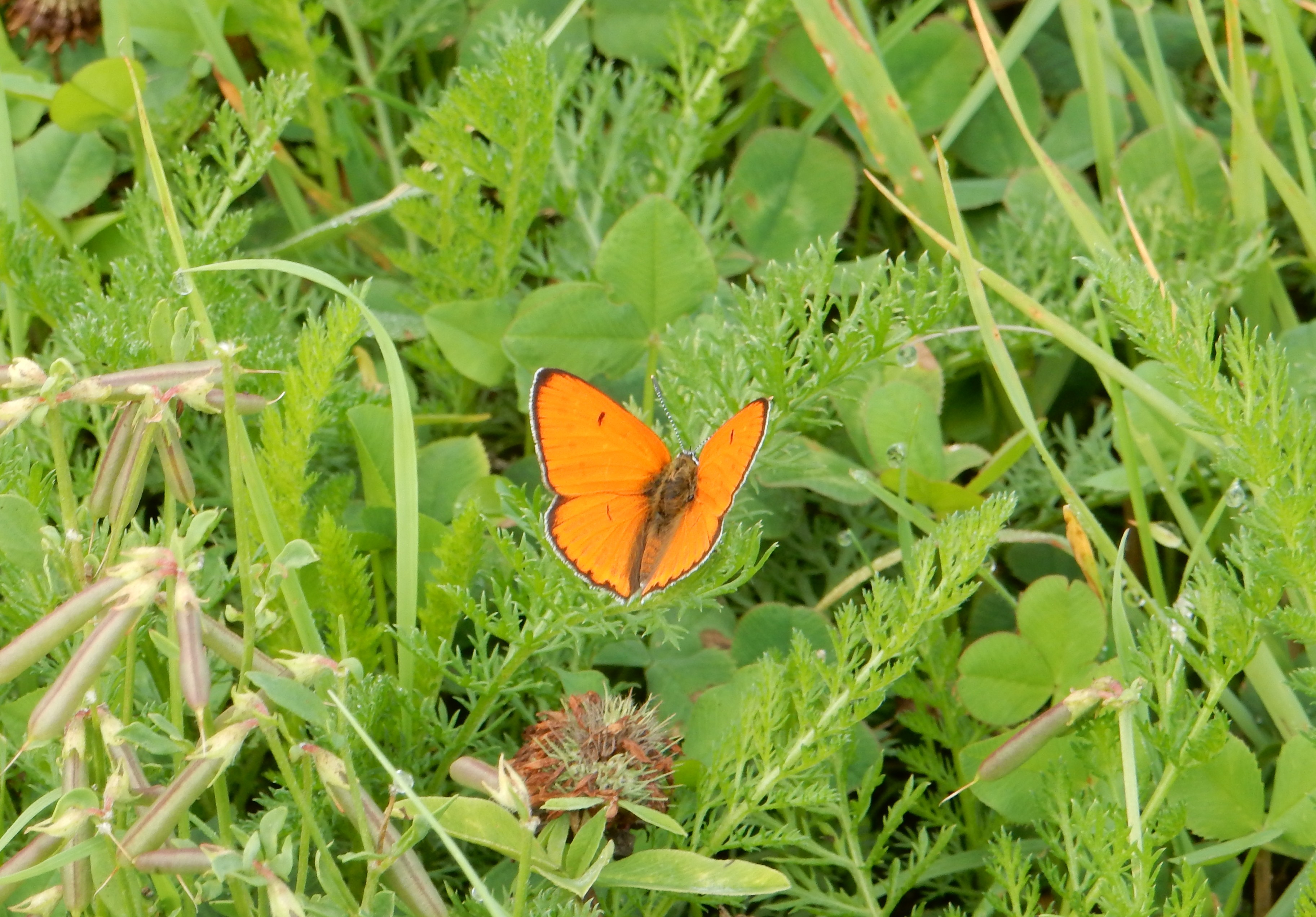 Die erste Flugzeit des Großen Feuerfalters hat begonnen, d. h. Ende Juni/Anfang Juli wurde nach Eiern an den entsprechenden Ampfer-Futterpfanzen gesucht. Weiter geht es dann erst wieder Mitte/Ende August zur zweiten Flugzeit.