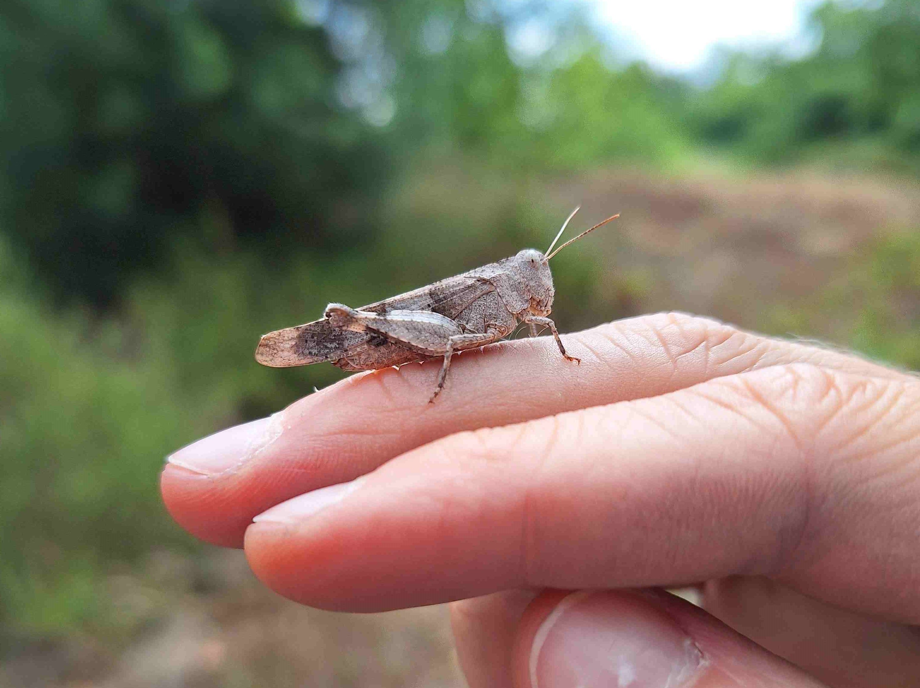 Eine weitere Artengruppe, die derzeit auf der Tagesordnung steht: Heuschrecken. Sie zirpen fleißig und können dadurch gut bestimmt werden. Zusätzlich kann mit Klopfschirmen nach gehölzbewohnenden und mit Detektoren nach im Ultraschall singenden Arten gesucht werden.